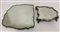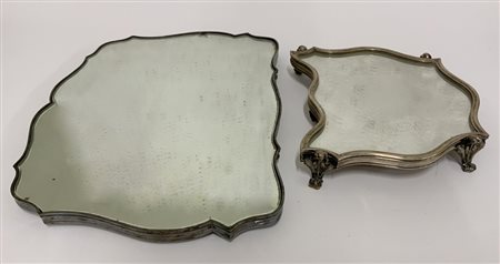 Lotto composto da due vassoi con struttura in legno, cornice in metallo argentato di forma mossa e piano in vetro specchiato. Prima metà secolo XX. (cm 48,5x36; cm 30x25) (difetti)