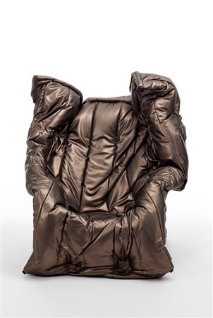 * Prototipo n. 3 della poltrona modello "Shadow". Produzione Meritalia, Como, 2007. Poliuretano espanso senza stampo e vincoli formali con rivestimento in ecopelle colore metallizzato. Esemplare unico. (cm 60x120x110) (lievi difetti)