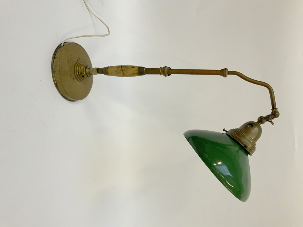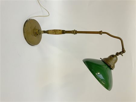 Lampada da tavolo con struttura in ottone e onice, paralume orientabile in metallo verniciato verde. Italia, anni '40. (h cm 46) (lievi difetti)