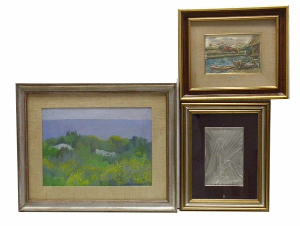 Lotto composto da un dipinto firmato Barbieri, un multiplo su lastra d'argento