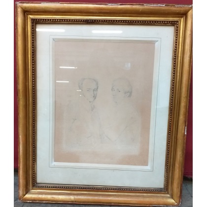 Litografia monocroma da Ingres, raffigurante "Gentiluomini" (cm 34x27)in cornice, iscrizione al verso (difetti)