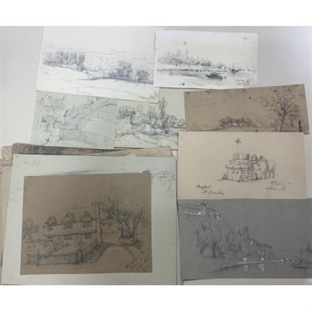 Maestro inglese del secolo XIX, cartella contenente numerosi disegni di diverso formato. Alcuni titolati