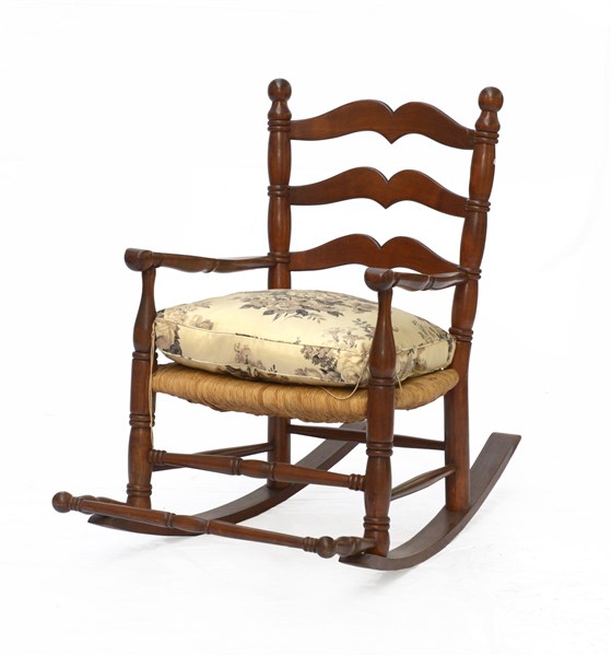 Sedia a dondolo in legno massello con seduta in corda. Italia, anni '40. (cm 56