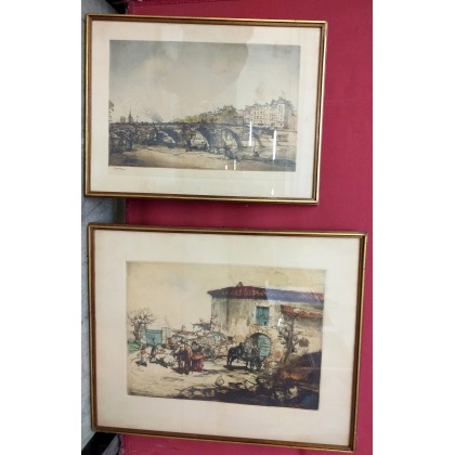Armand Coussens "Paesaggi e scorci" quattro acqueforti a colori di cui tre firma