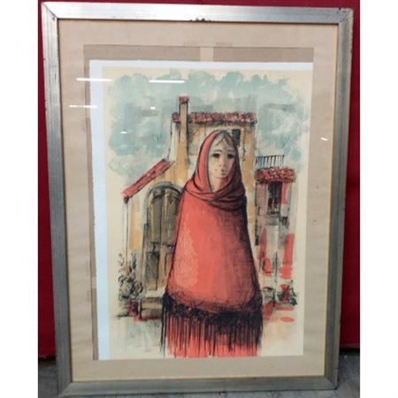 "Figura in rosso" litografia (cm 70x50) es. 9/100, in cornice. Allegato certificato di autenticità
