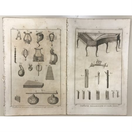 Diderot D'Alambert. Liuteria. 16 tavv. in folio acquaforte su rame (difetti)