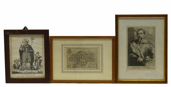 Lotto composto da tre incisioni di diversa epoca e soggetto. In cornici