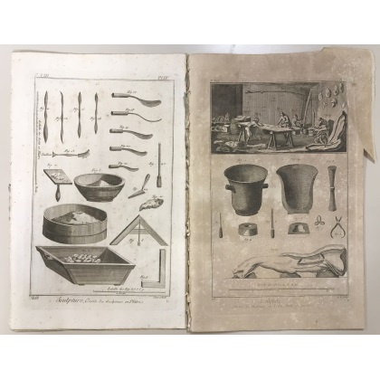 Diderot D'Alambert. Scultura e strumenti per la scultura. 24 tavv. in folio. Acuqaforte su rame (difetti)