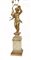 Scultura raffigurante putto che sorregge un'appliques a tre fiamme in ferro battuto su colonna in legno laccato a finto marmo e dorato (h cm 200) (difetti e mancanze)