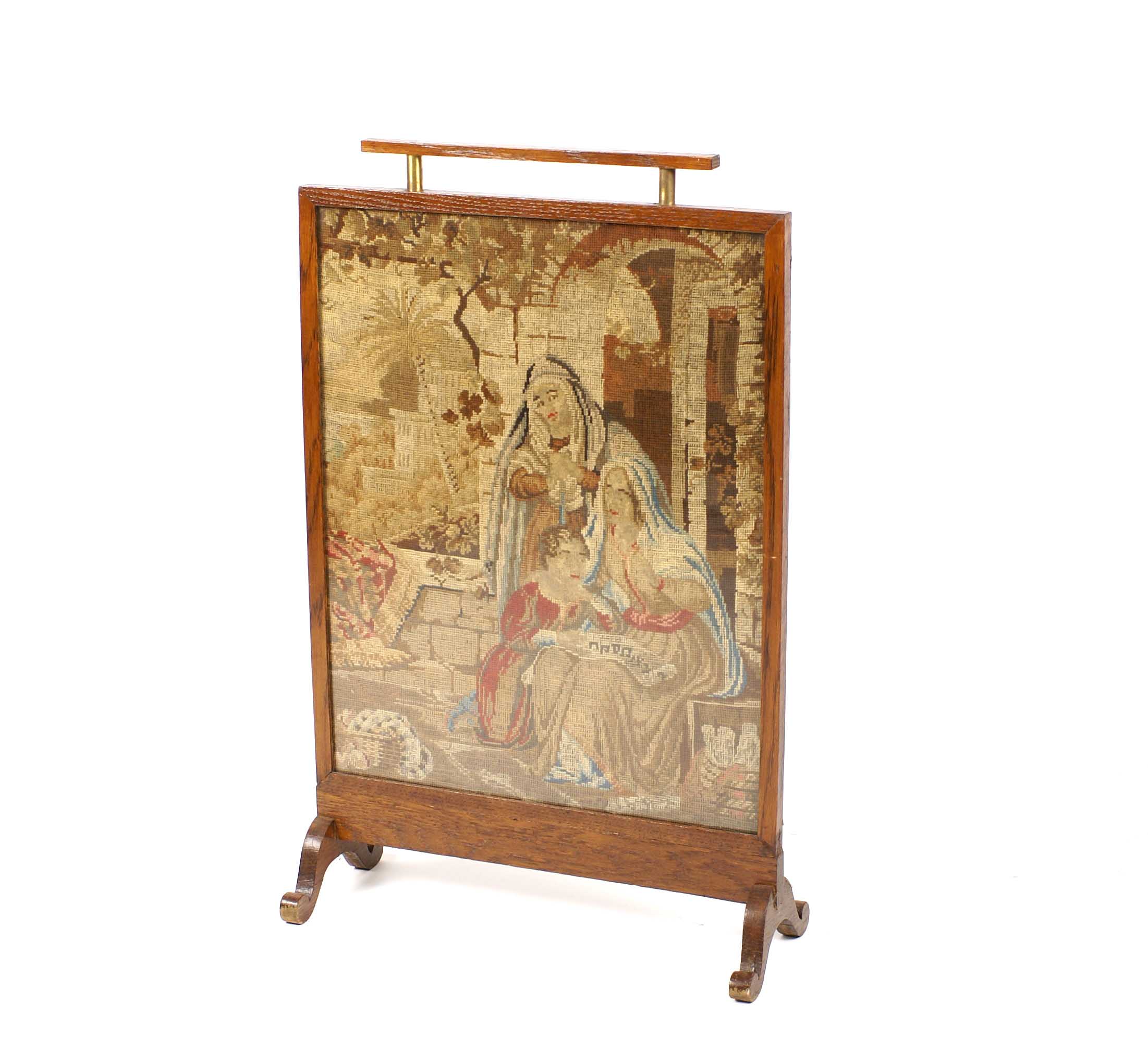 PARAFAVILLE IN LEGNO XIX secolo Con pannello centrale ricamato a piccolo punto e raffigurante la Sacra Famiglia Dim. 78x50 cm.