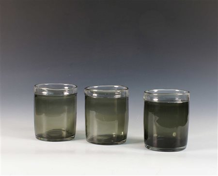 SET DI TRE CONTENITORI In vetro colorato H. 16 cm.