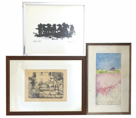 Lotto composto da una serigrafia a colori di Carlo Mattioli, una litografia in bianco e nero di Arturo Tosi e una litografia di firma indecifrata