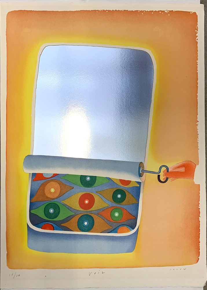 Jean-Michel Folon "La boite à sardines" 1984 litografia a colori cm 84x60,5
