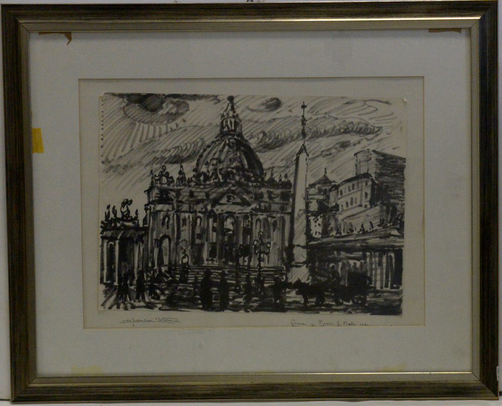 Franzini Carlo detto Saturnino "Roma Piazza S. Pietro" 1961 pennarello su carta
