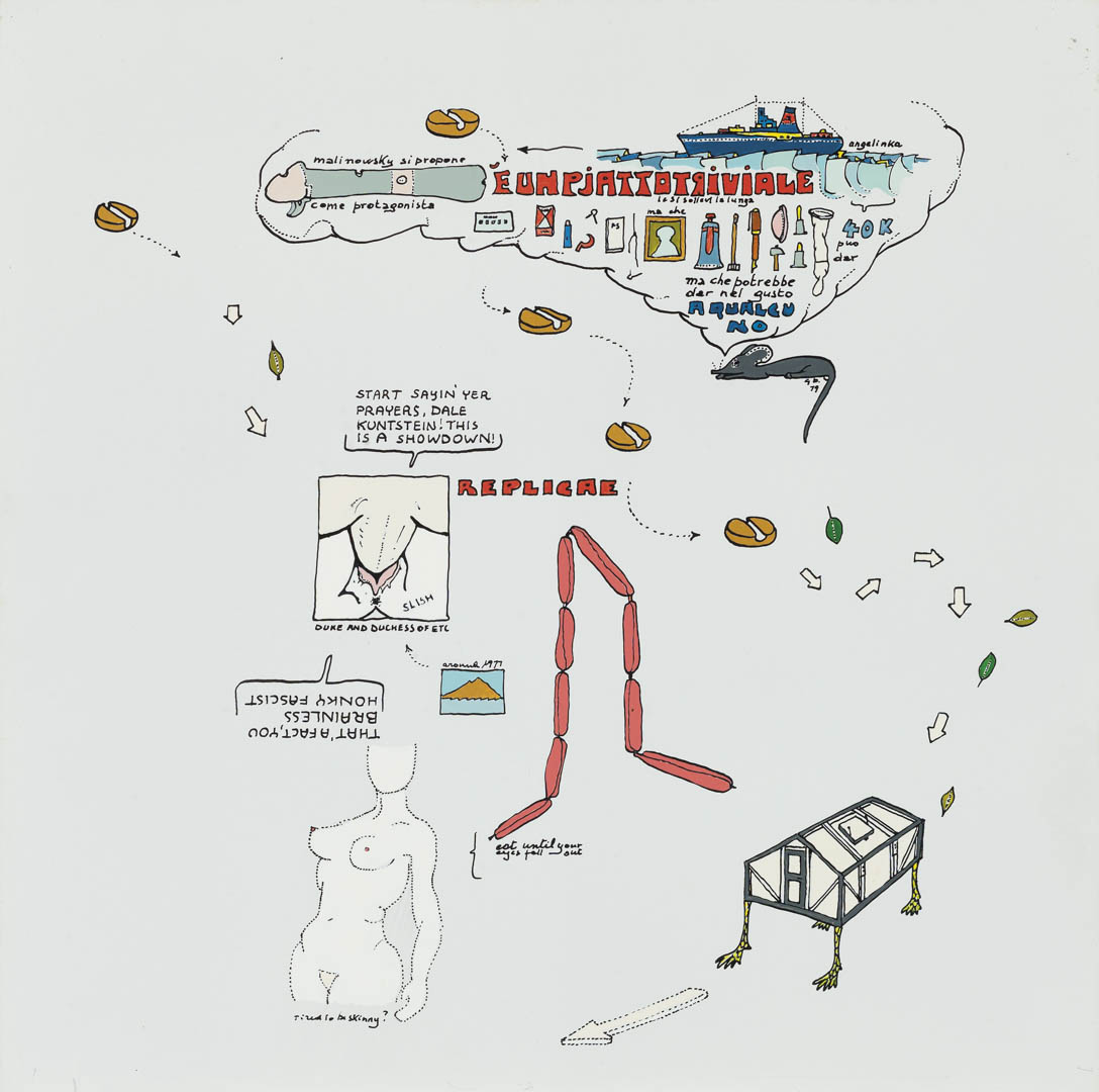 Gianfranco Barrucchello (Livorno 1924 ) Start sayn‘ prayers, Dale Kunststein, 1979;Tecnica mista su alluminio, 20 x 20 cm