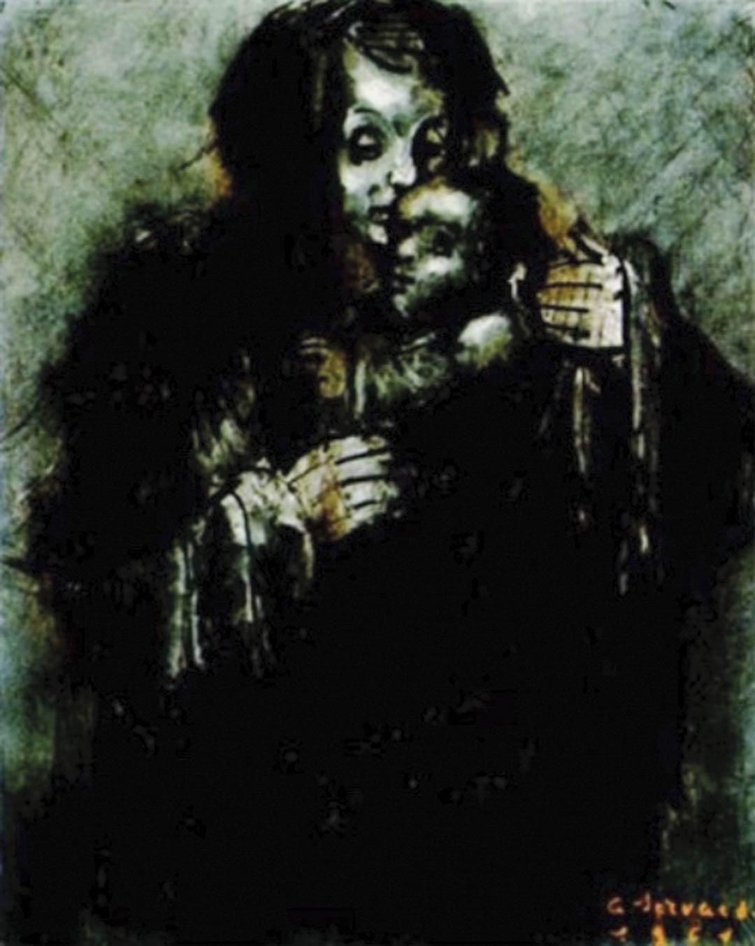 Albert Servaes (Gent 1883 – Luzern 1966) Madre con bambino, 1956;Tecnica mista su carta, 75 x 60 cm, in cornice