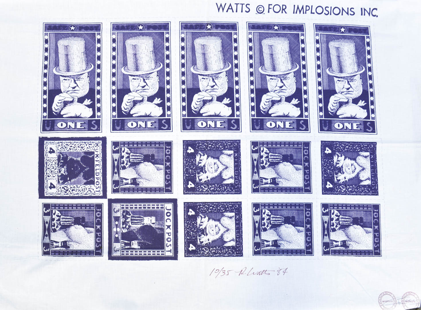 Robert Watts (Burlington, 1923 – Bangor, 1988) Safe Post / K.U.K. Feldpost / Jockpost, 1984;Serigrafia su tela, 104 x 125 cm, edizioni archivio Francesco Conz Verona,