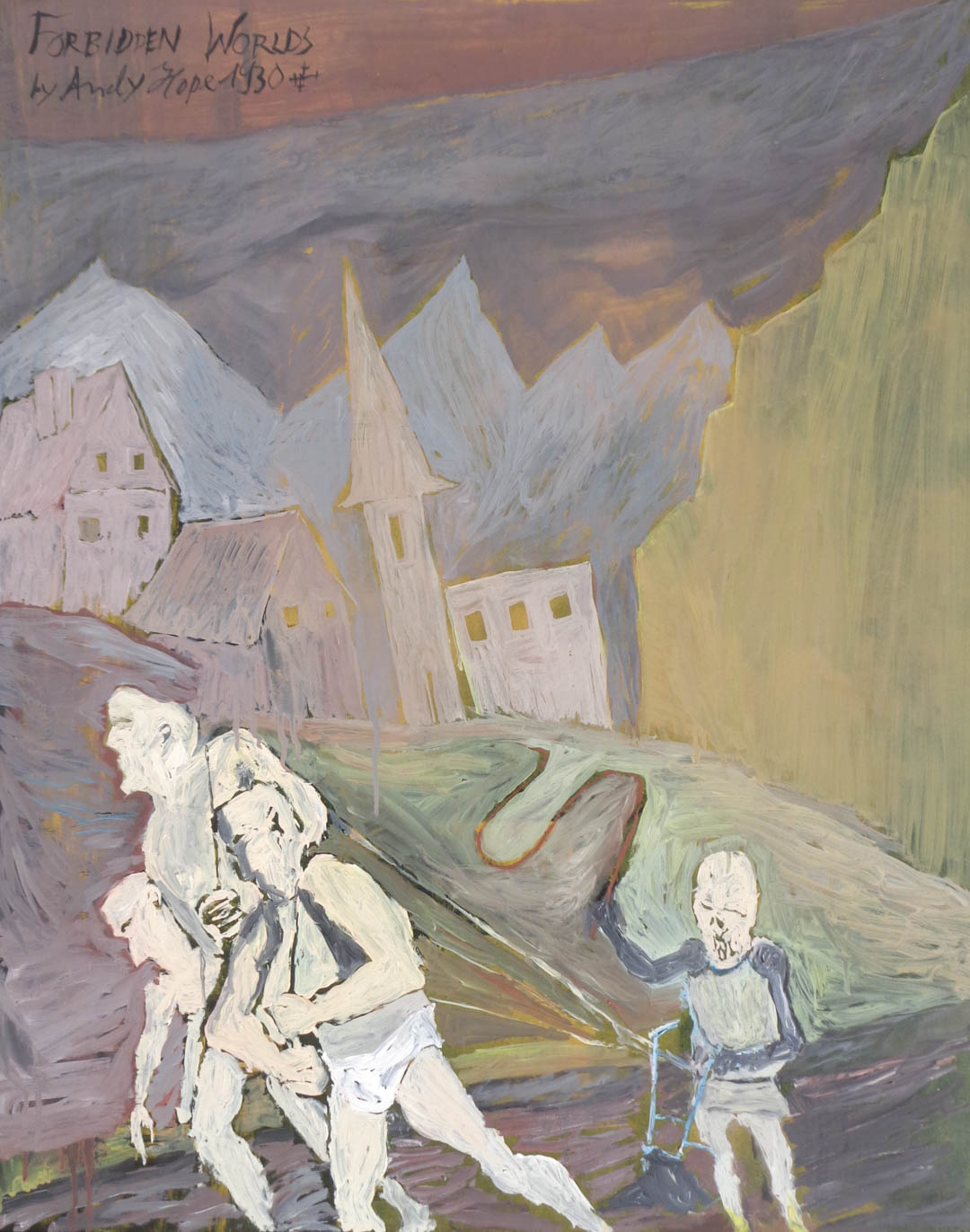 Andreas Hofer (München/Monaco 1963) Forbidden worlds, 2005;Olio su tavola, 91,5 x 76 cm, al retro etichetta Galleria “Hauser & Wirth,