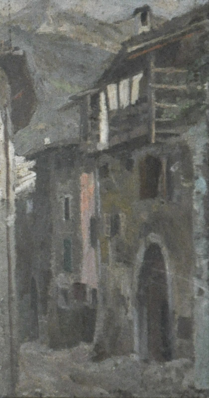 Ludwig Putz (Wien1866 – München 1947) Lizzana presso Rovereto;Olio su cartone, 10,5 x 6,5 cm, in cornice