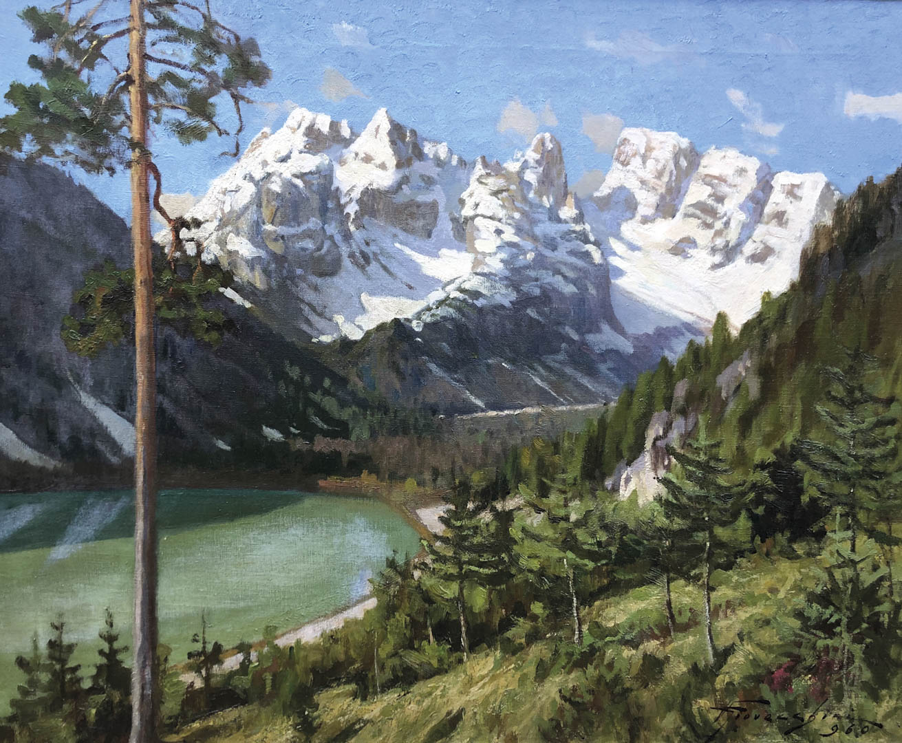 Ulderico Giovacchini (Florenz/Firenze 1890 – Bozen/Bolzano Lago di Landro con Monte Cristallo, 1960;Olio su tela, 60 x 75 cm, in cornice