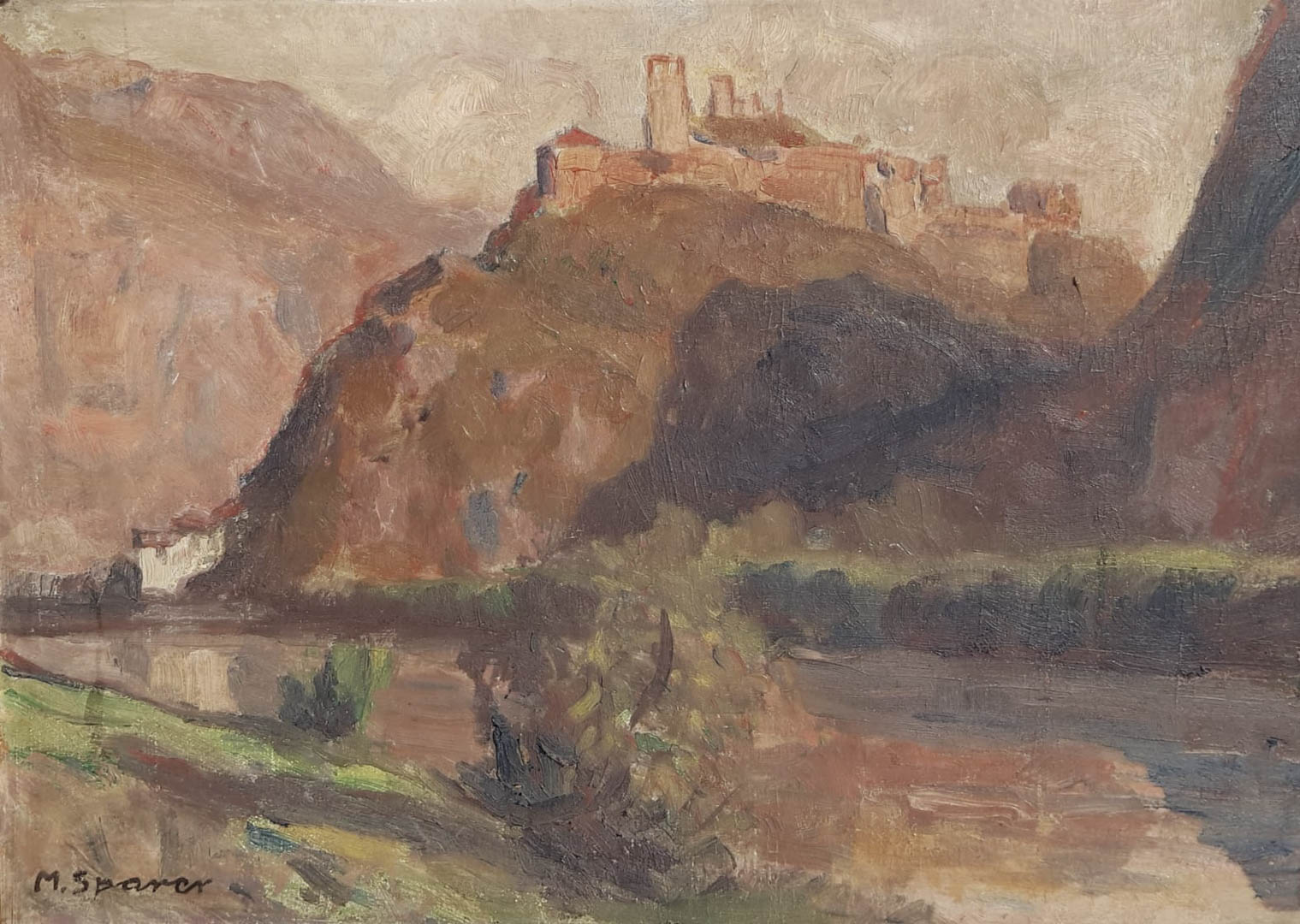 Max Sparer Castel Firmiano;Olio su cartone, 34 x 47 cm, in cornice