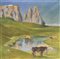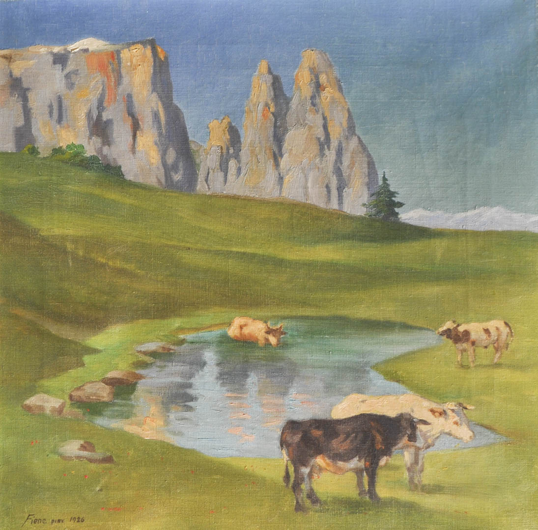 Josef Fiene Pascolo davanti allo Sciliar, 1926;Olio su tela, 50 x 50 cm, in cornice