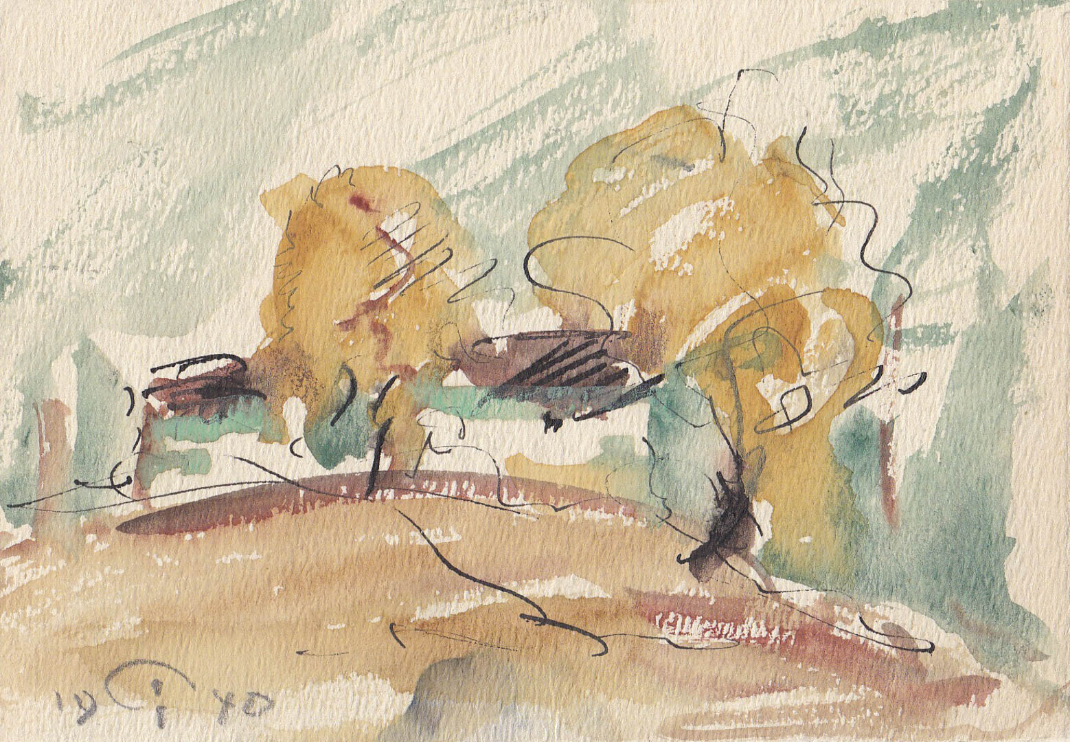 Josef Mahlknecht (Bozen/Bolzano 1886 – Meran/Merano 1953) Maso in autunno, 1940;Acquerello, China, 8,5 x 12,5 cm