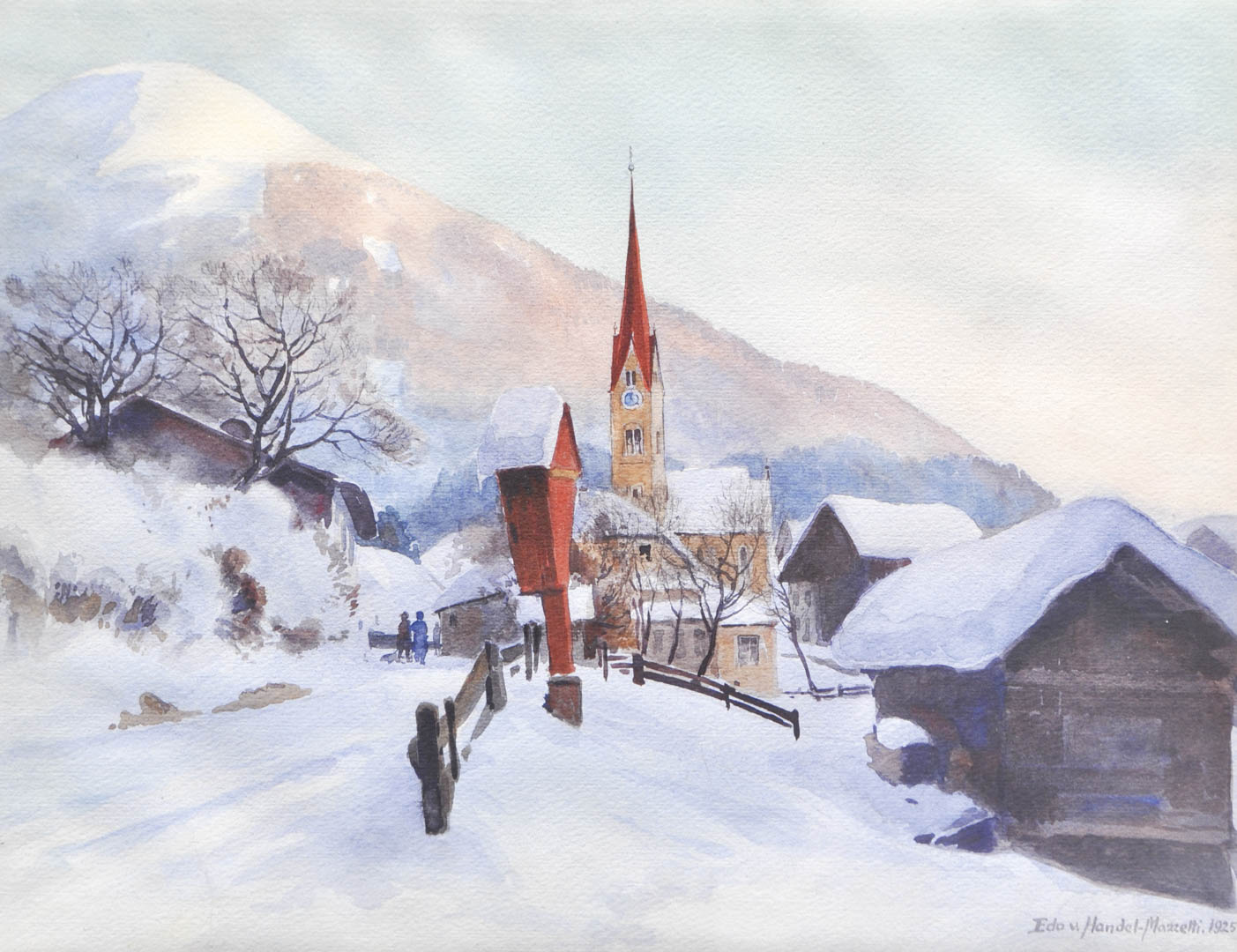 Eduard von Handel-Mazzetti (Innsbruck 1885 – 1950) Patsch in inverno, 1925;Acquerello, 25,5 x 33 cm, in cornice