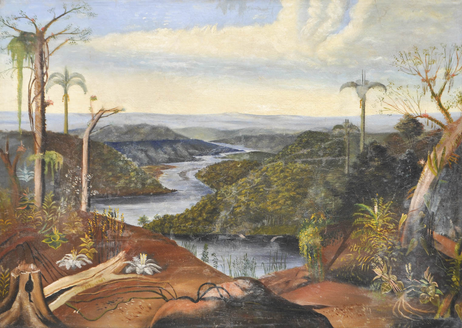 Rafael Troya Umfeld, 19. Jh./cerchia, Ottocento Vista sulla pianura amazzonica;Olio su tela, 47 x 79,5 cm, restauri