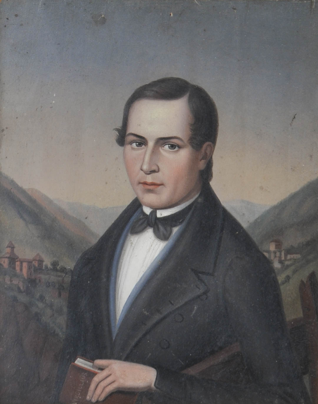 Michael Andersag (Pawigl/Lana 1799 – Reseca, USA 1864) Ritratto di un cittadino meranese, 1843;Olio su tavola, 24,5 x 19 cm, in cornice