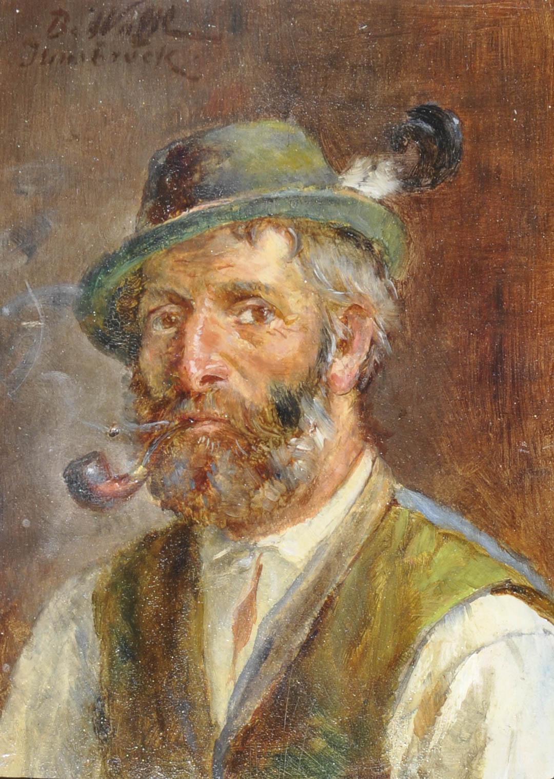Balthasar Waltl (Kirchdorf an der Krems 1858 – Innsbruck 1908) Contadino con pipa;Olio su tavola, 18,2 x 13 cm, in cornice