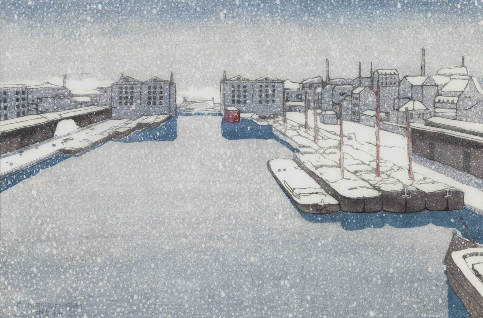 Carl Moser (Bozen/Bolzano 1873 – 1939) Canale parigino con la neve, 1931;Xilografia a colori, 30 x 45 cm,