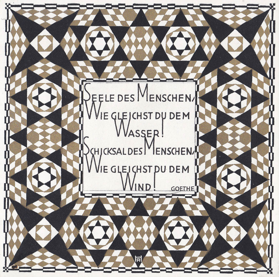 Anton Hofer (Bozen/Bolzano 1888 –1979) Ornamento e scritta “Goethe“;Litografia, 16 x 16 cm