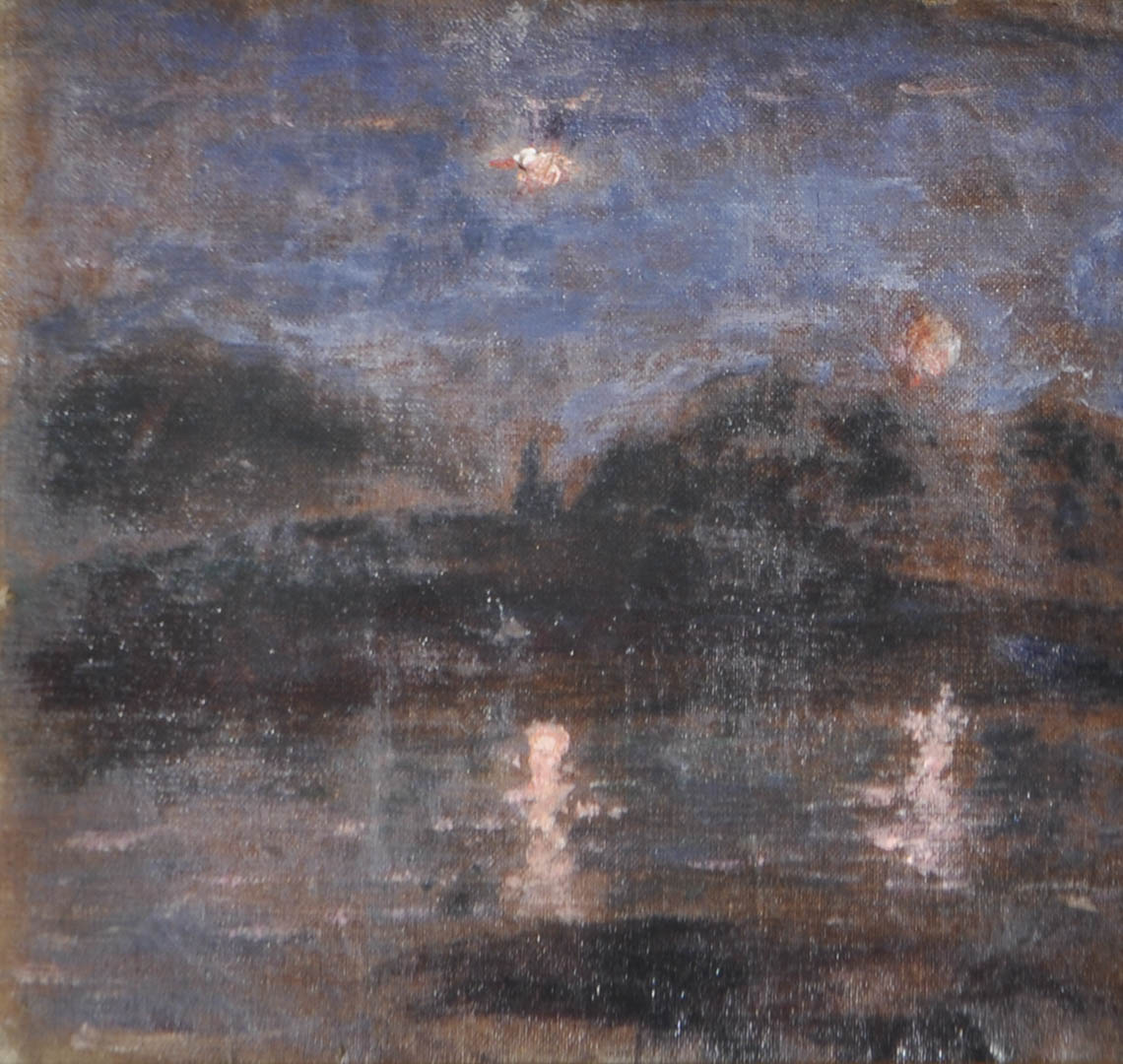 Giuseppe Angelico Dallabrida (Caldonazzo 1874 – Mezzolombardo 1959) Paesaggio al chiaro di luna;Olio su tela, 20,5 x 22 cm, in cornice