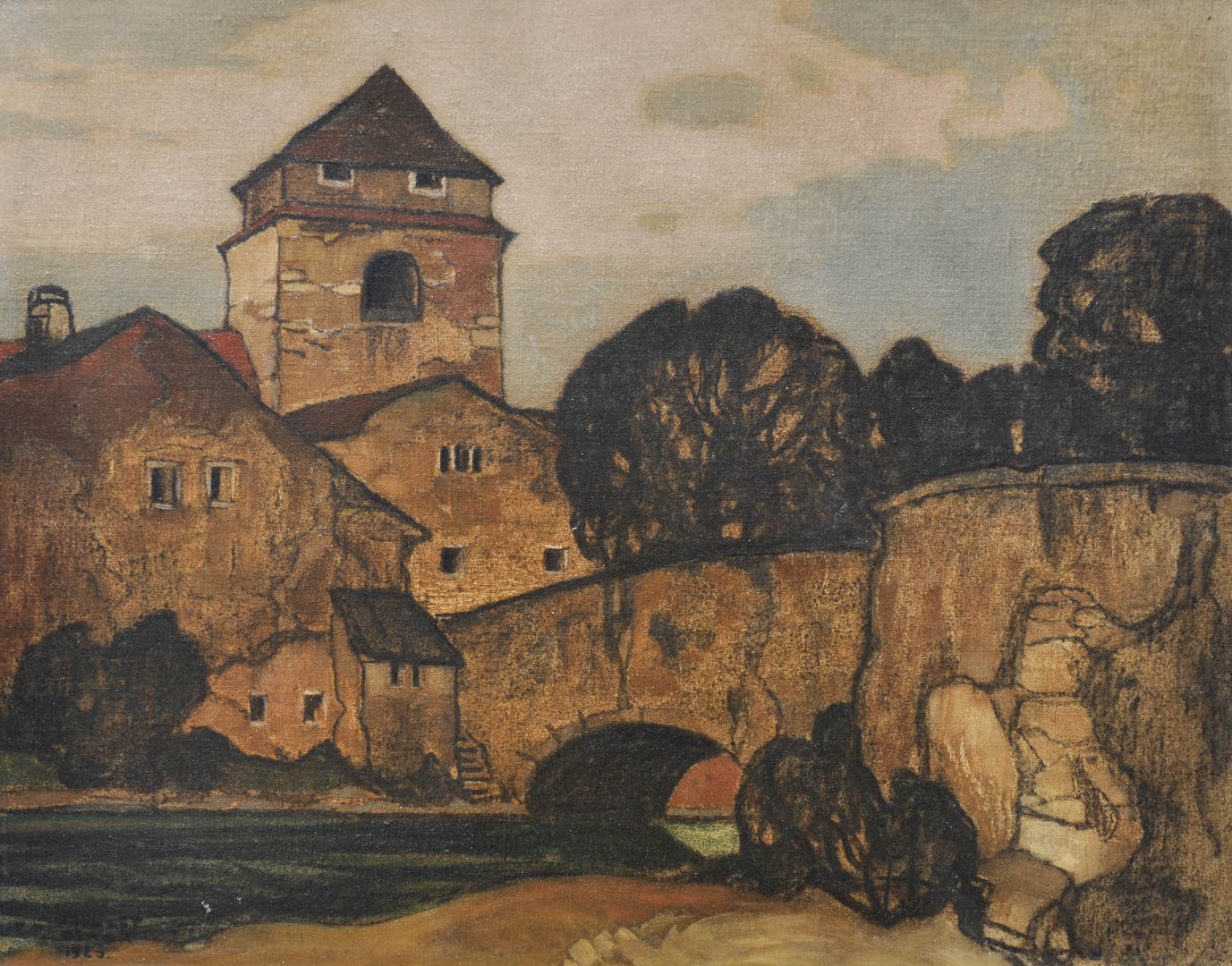Oskar Mulley i (Trient/Trento 1886 – Rom/Roma 1919) Sul ponte, 1925;Olio su tela su cartone, 38,5 x 49 cm, in