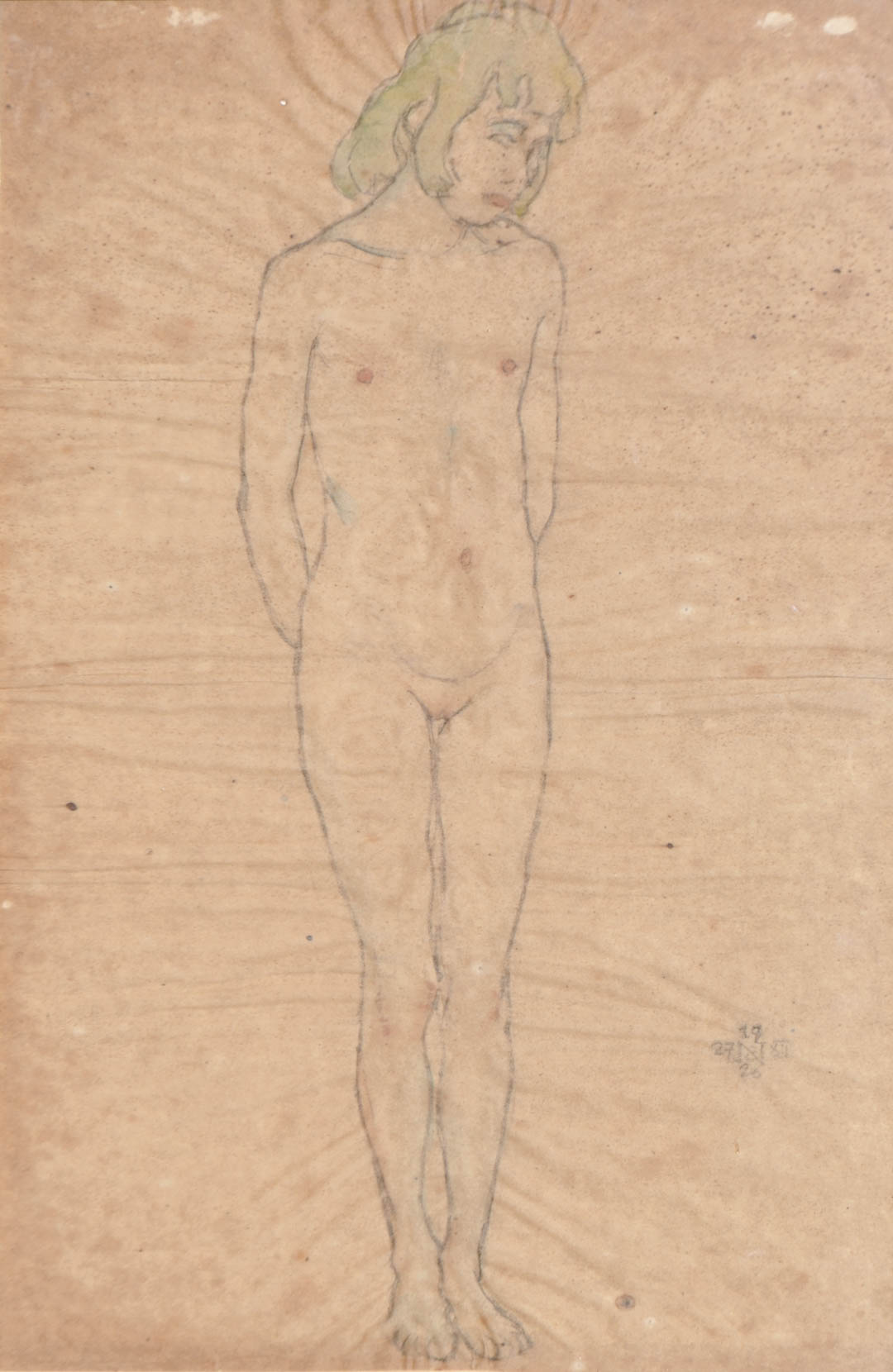 Ernst Nepo (Dauba, Böhmen 1895 – Innsbruck 1971) Nudo di ragazza, 1920;Acquerello e matita, 46,5 x 31 cm, carta brunita,