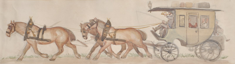 Albert Stolz Bozen/Bolzano 1875 – 1947) Diligenza postale a Bolzano;Acquerello, 17 x 62,5 cm, in cornice