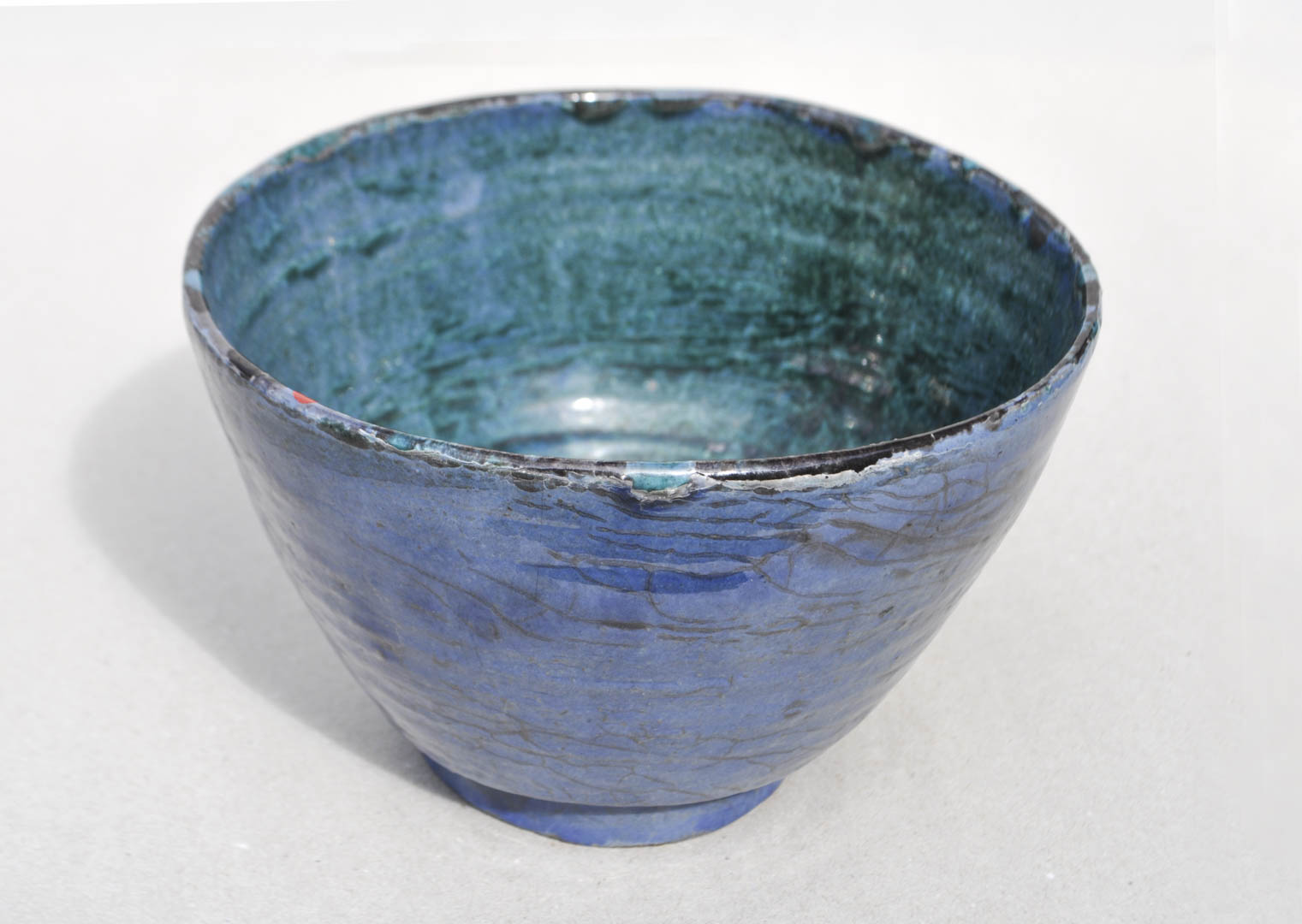 Maria Delago St. Leonhard/S. Leonardo 1902 – Brixen/Bressanone 1979) Coppa azzurra;Ceramica smaltata, altezza 11 cm, diam. 17 cm