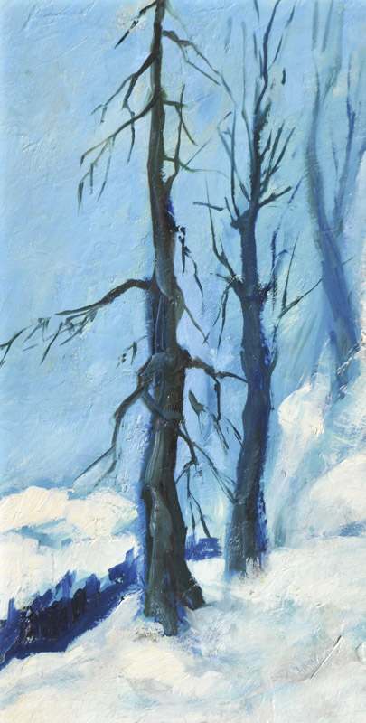 Hans Ebensperger (Prad am Stilfserjoch/Prato allo Stelvio 1929 – 1971) Alberi in inverno, 1969 ca.;Olio su cartone, 48,5 x 25 cm, in cornice