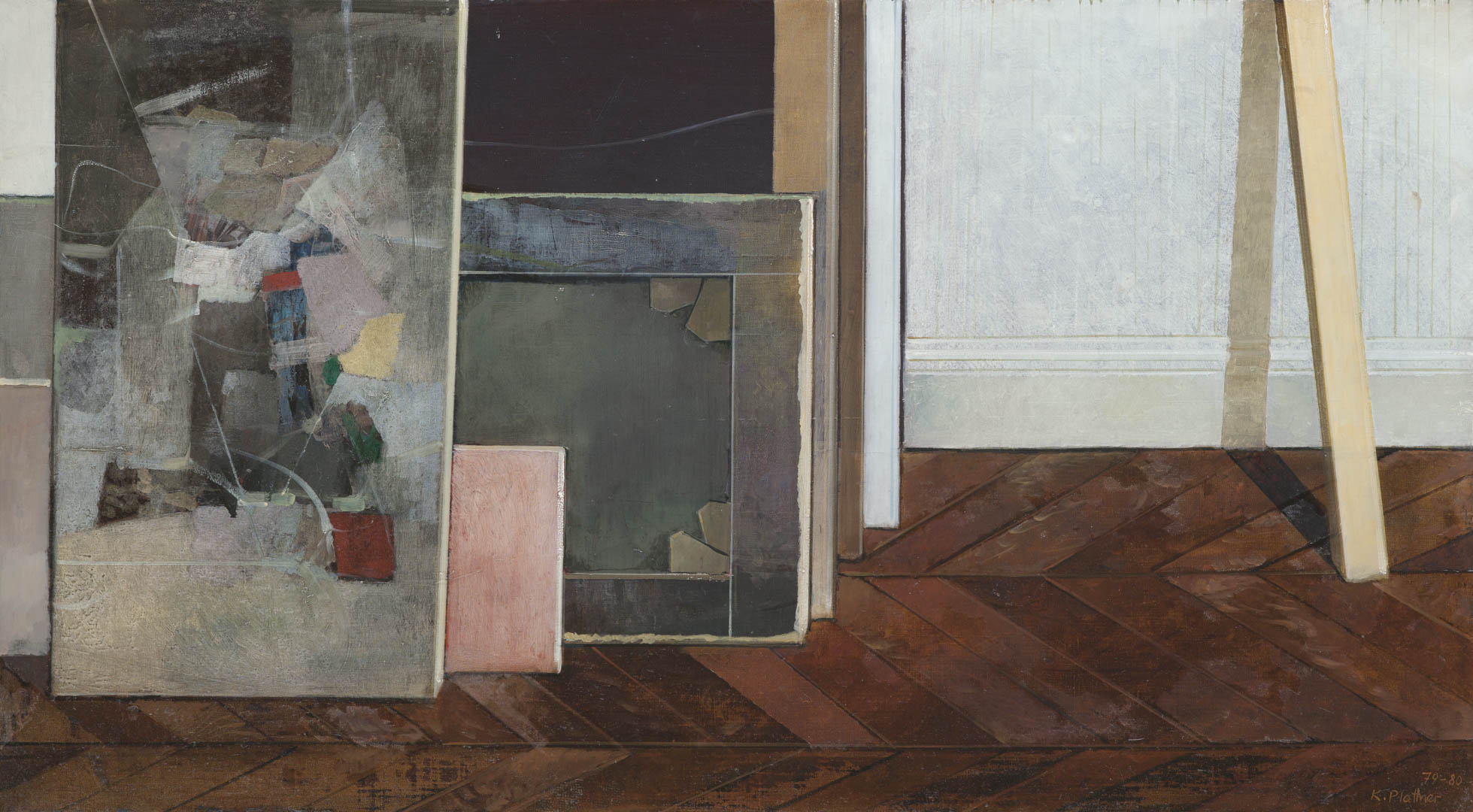 Karl Plattner (Mals/Malles 1919 – Mailand/Milano 1986) Nell’ atelier, 1979-80;Olio su tela, 49,5 x 89,5 cm, in cornice