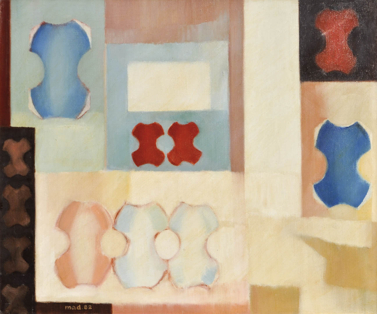 Mario Dall’Aglio (Castelguglielmo 1927 - Bozen/Bolzano 2016) Moduli in strutture geometriche, 1982;Olio su tela su cartone, 49 x 59,5 cm, in cornice