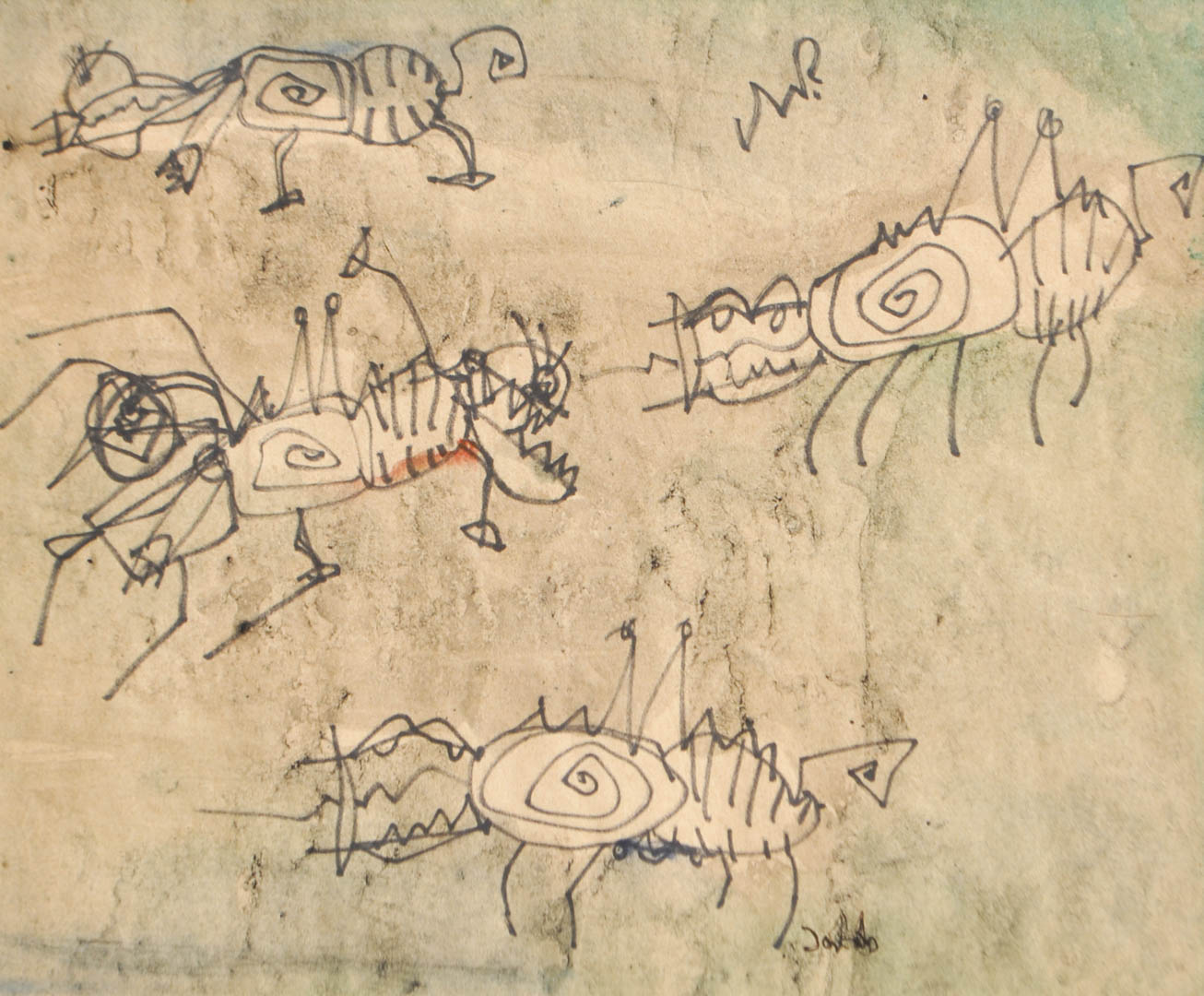 Jakob de Chirico (* Innsbruck 1943) Quattro insetti;Pennarello e acquerello, 27 x 33 cm, in cornice