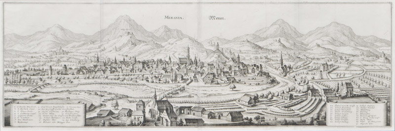 Matthäus Merian Merania/Merano, 1650 ca.;Incisione su rame, 19,7 x 61,5 cm (lastra), in cornice