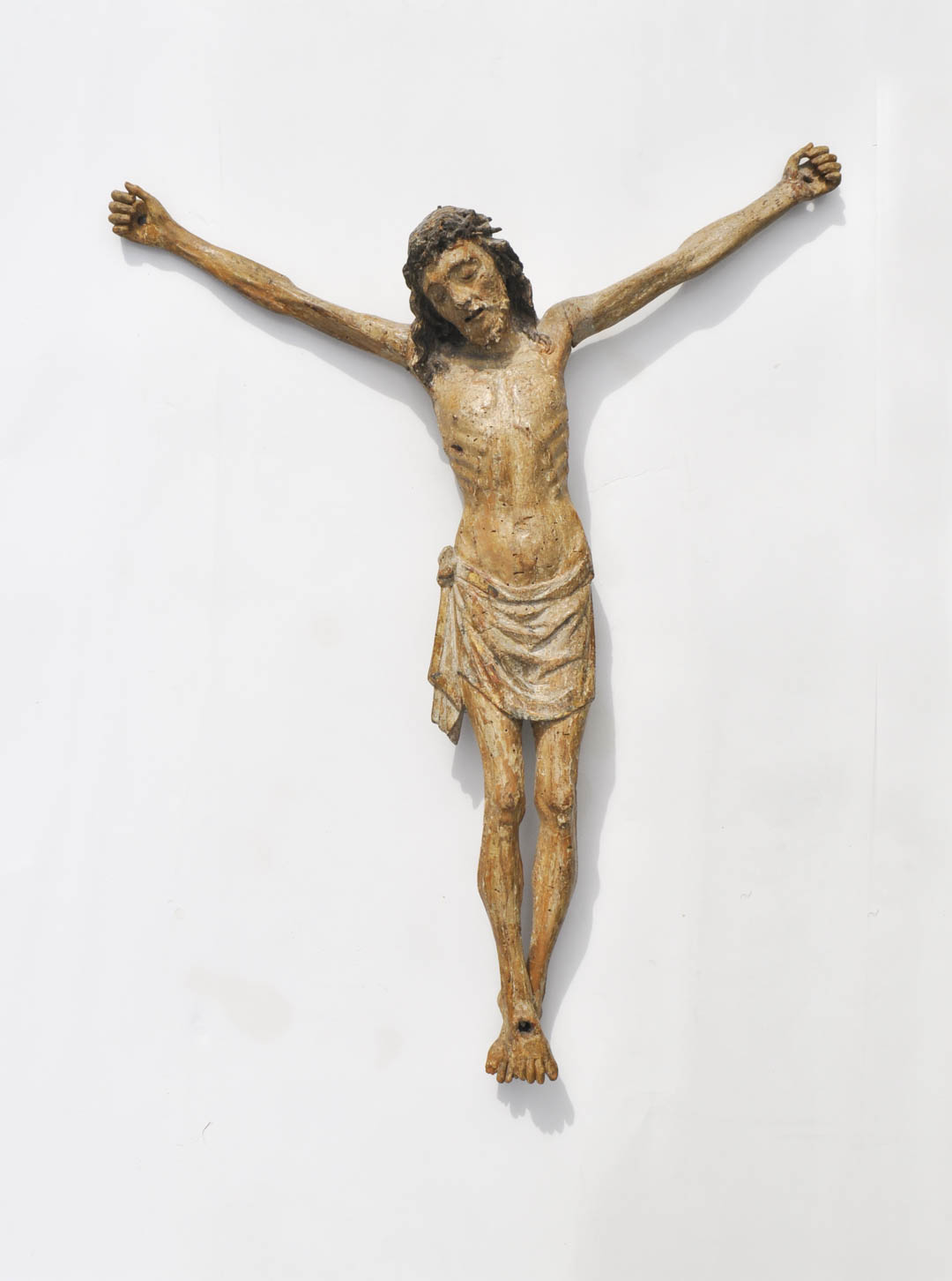 Südtirol, 18. Jh./Sudtirolo, XVIII sec. Crocifisso;Legno dipinto, altezza 60 cm, danni, leggera infestazione