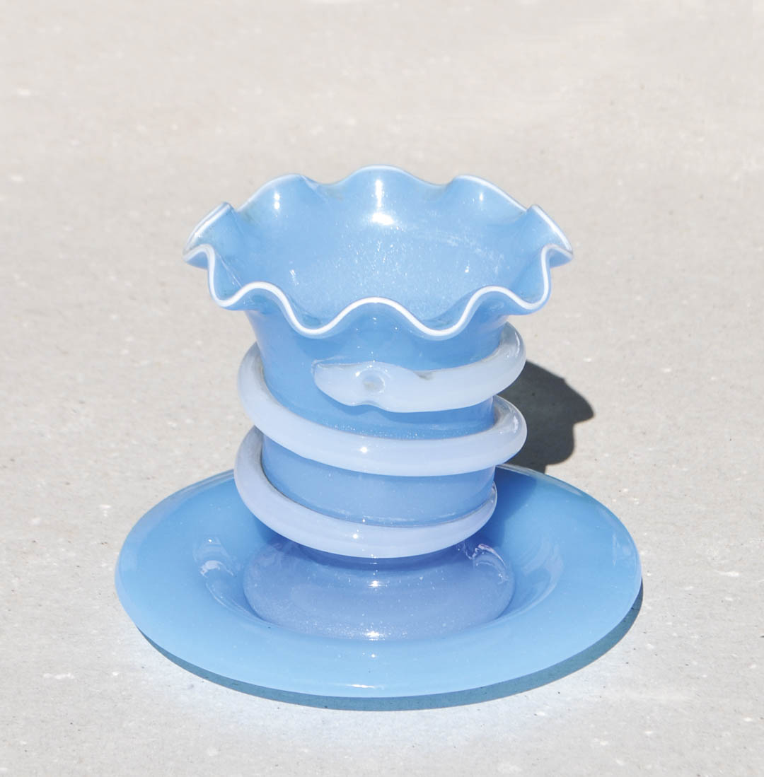 Bicchiere con serpente, metà Ottocento;Altezza bicchiere 11 cm, diametro piattino 14 cm