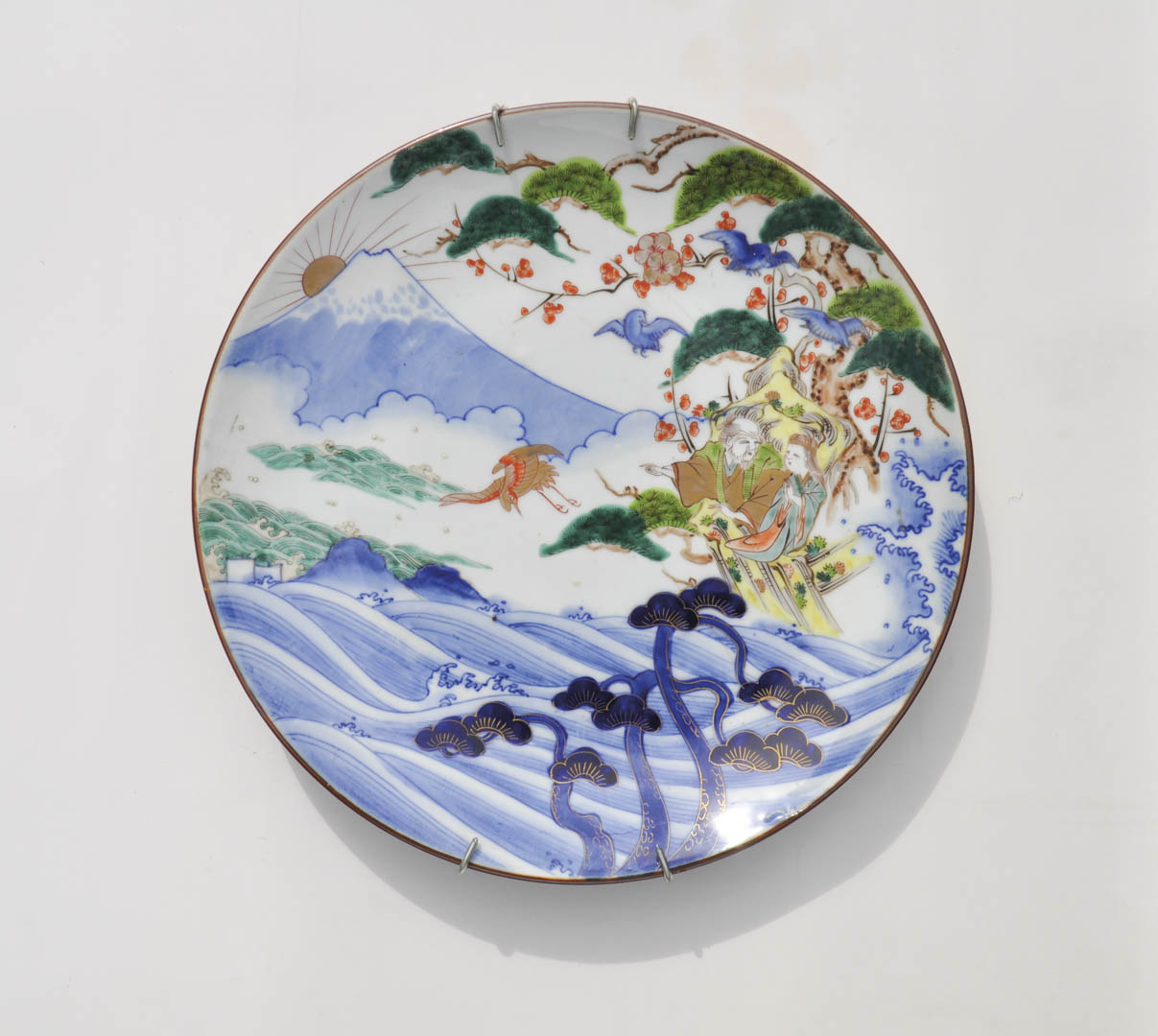 Piatto giapponese Imari con Fujiyama, Ottocento;Porcellana, d. 36,8 cm Sul...