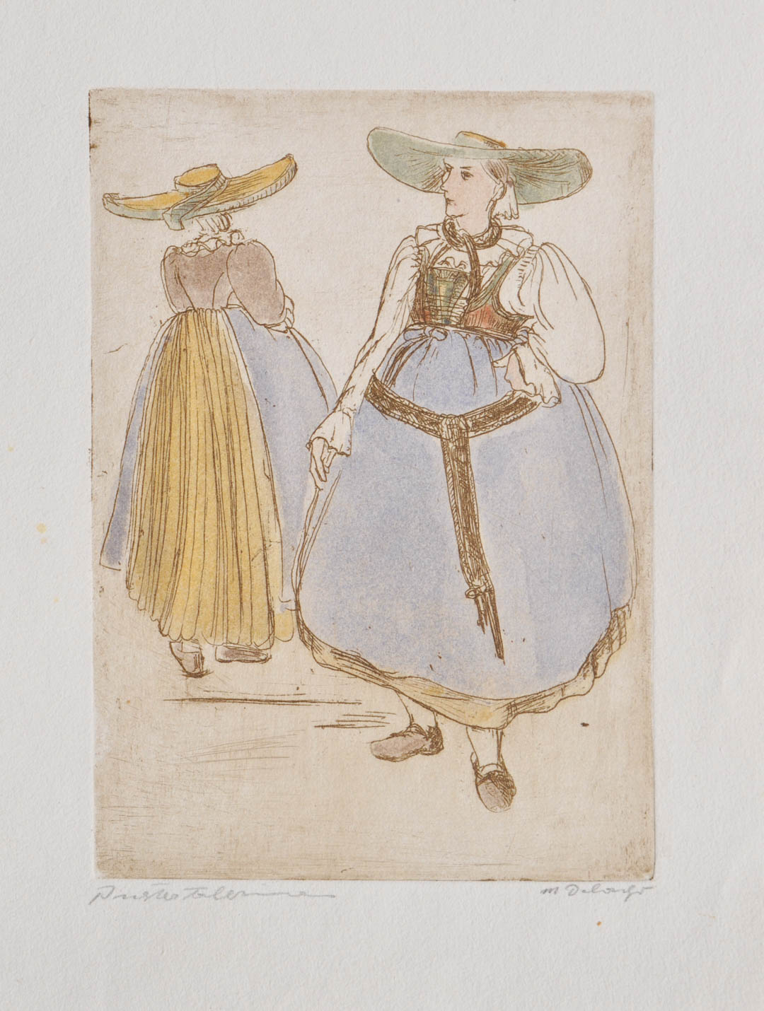 Maria Delago (Abtei/Val Badia 1923 – 2014) Donne della Val Pusteria, fiori di campo;2 acqueforti colorate, misure