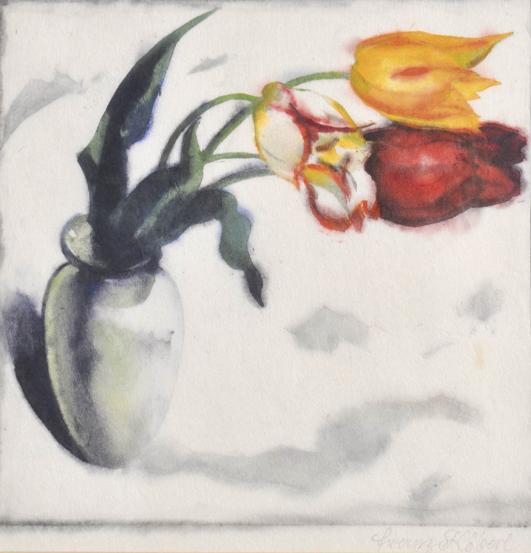Franz Köberl (Innsbruck 1889 – 1967) Tulipani in vaso;Acquerello, 23 x 22 cm, in cornice