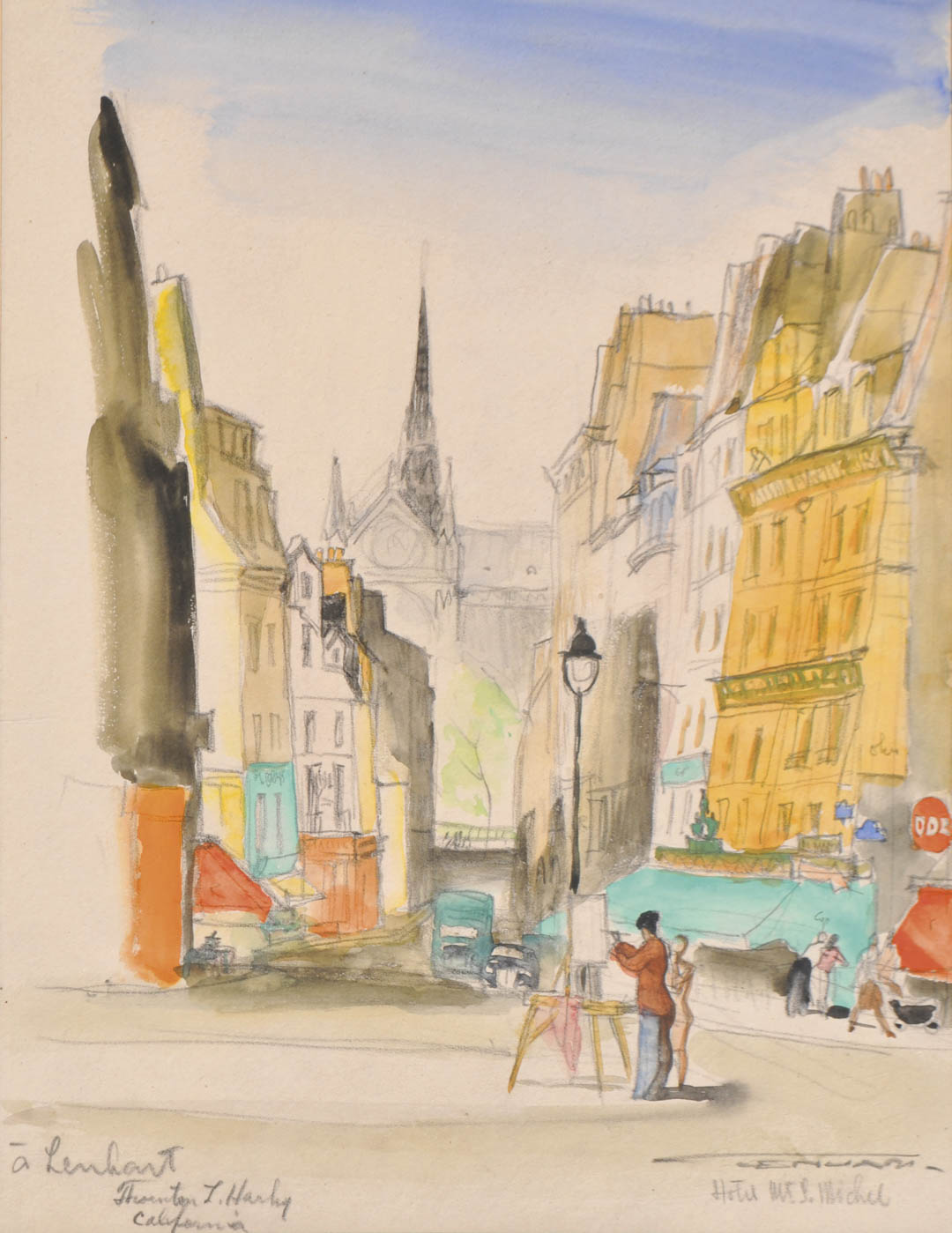 Franz Lenhart (Bad Häring 1898 – Meran/Merano 1992) Hotel M. St. Michel;Acquerello, gessetti, 33 x 25 cm, in cornice