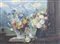 Konstantin Stoitzner (Chrostau 1863 – Wien/Vienna 1933) Vaso di fiori con vista su Gran Zebrù;Olio su tela, 60 x 80 cm, scheggiture di colore, in cornice